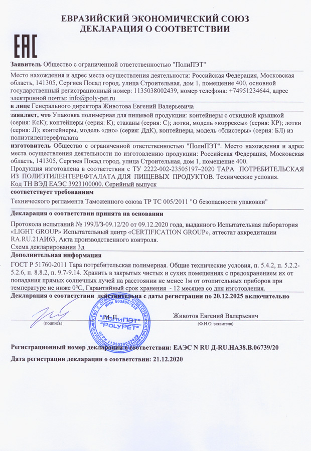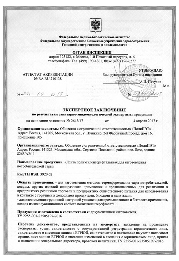 ООО «ПолиПЭТ» - это торгово-производственная компания, основным направлением которой является производство пищевой упаковки из ПЭТ пленки собственного производства. Данная плёнка используется для изготовления упаковки для кондитерской промышленности (коррексы, подложки, контейнеры), изготовления блистерной упаковки, упаковки для молочной промышленности (контейнеры, крышки), упаковки для быстрого питания, а также одноразовой посуды.